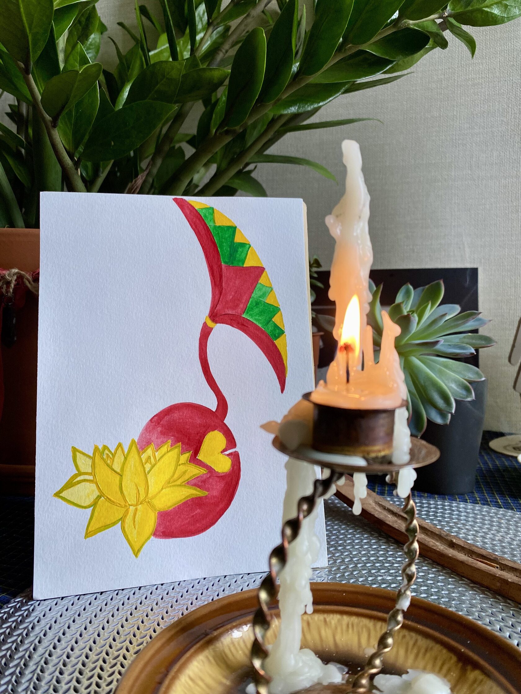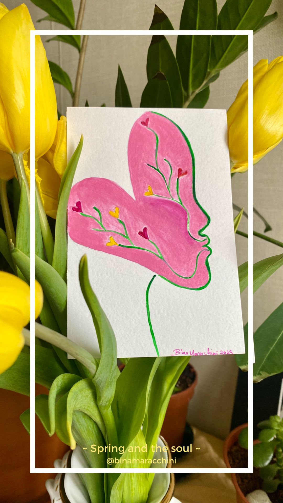 When I started to draw on postcards or paper for painting, it was the period I felt I needed to express myself so deeply and so freely, without words, I wanted to go deep down inside of me to communicate everything my soul felt, regarding myself, life, situations, people and everything that has to do with the world.
